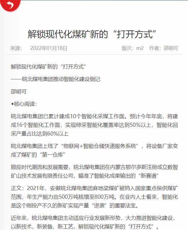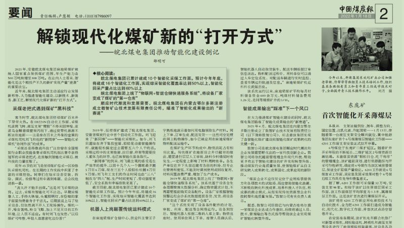 1月18日中國煤炭報2版頭條:解鎖現(xiàn)代化煤礦新的“打開方式”