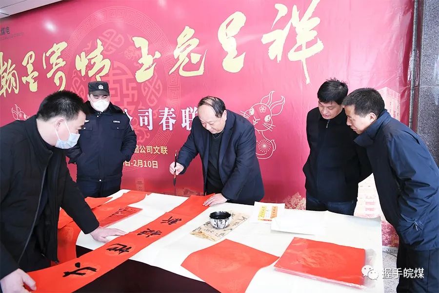 為迎接農(nóng)歷新年,近日,皖北煤電集團(tuán)公司工會(huì)在總部舉辦以“翰墨寄情、玉兔呈祥”為主題的春聯(lián)展活動(dòng),春聯(lián)展時(shí)間一直延續(xù)到春節(jié)后。1月19日上午,皖北煤電集團(tuán)公司機(jī)關(guān)工會(huì)在集團(tuán)公司機(jī)關(guān)二樓大廳舉辦送春聯(lián)活動(dòng)。該集團(tuán)公司黨委副書記周偉到現(xiàn)場觀看。集團(tuán)機(jī)關(guān)工會(huì)相關(guān)負(fù)責(zé)人以及各單位書法愛好者參加活動(dòng)。