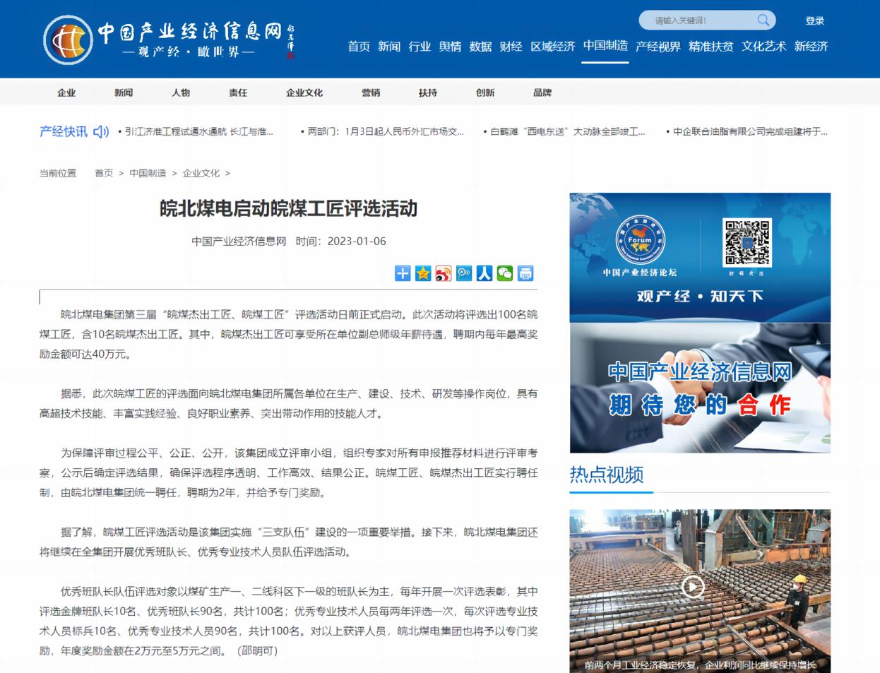1月6日中國(guó)產(chǎn)業(yè)經(jīng)濟(jì)信息網(wǎng):皖北煤電啟動(dòng)皖煤工匠評(píng)選活動(dòng)
