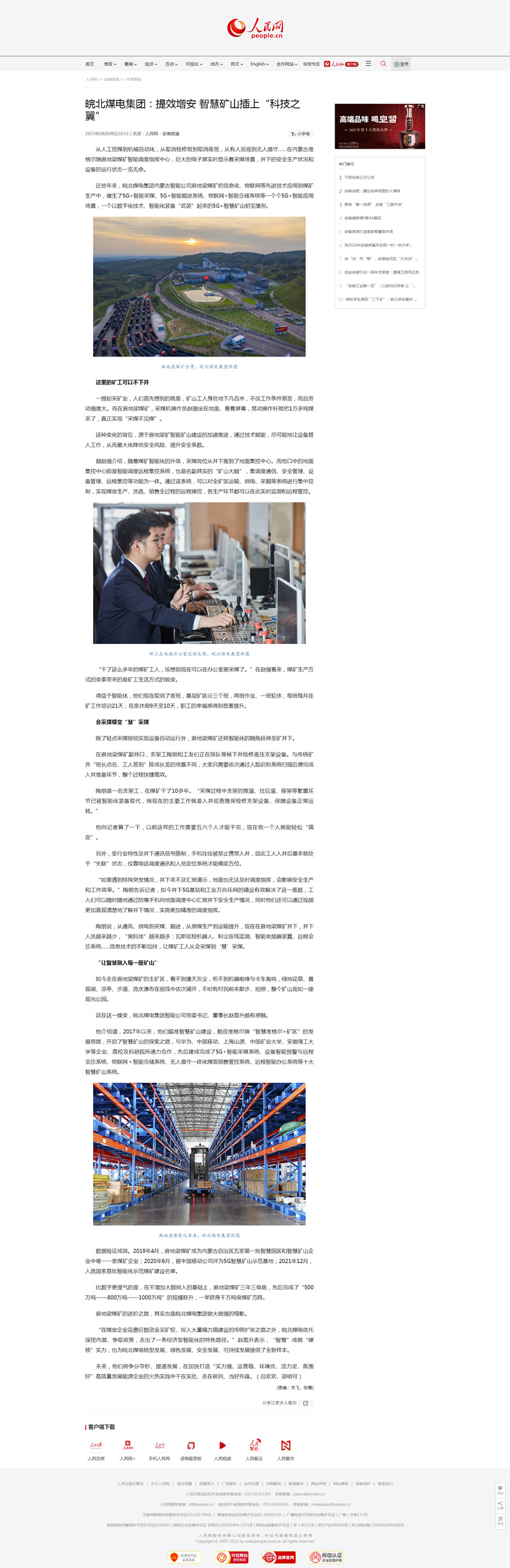 8月8日人民網(wǎng):皖北煤電集團(tuán)提效增安 智慧礦山插上“科技之翼”