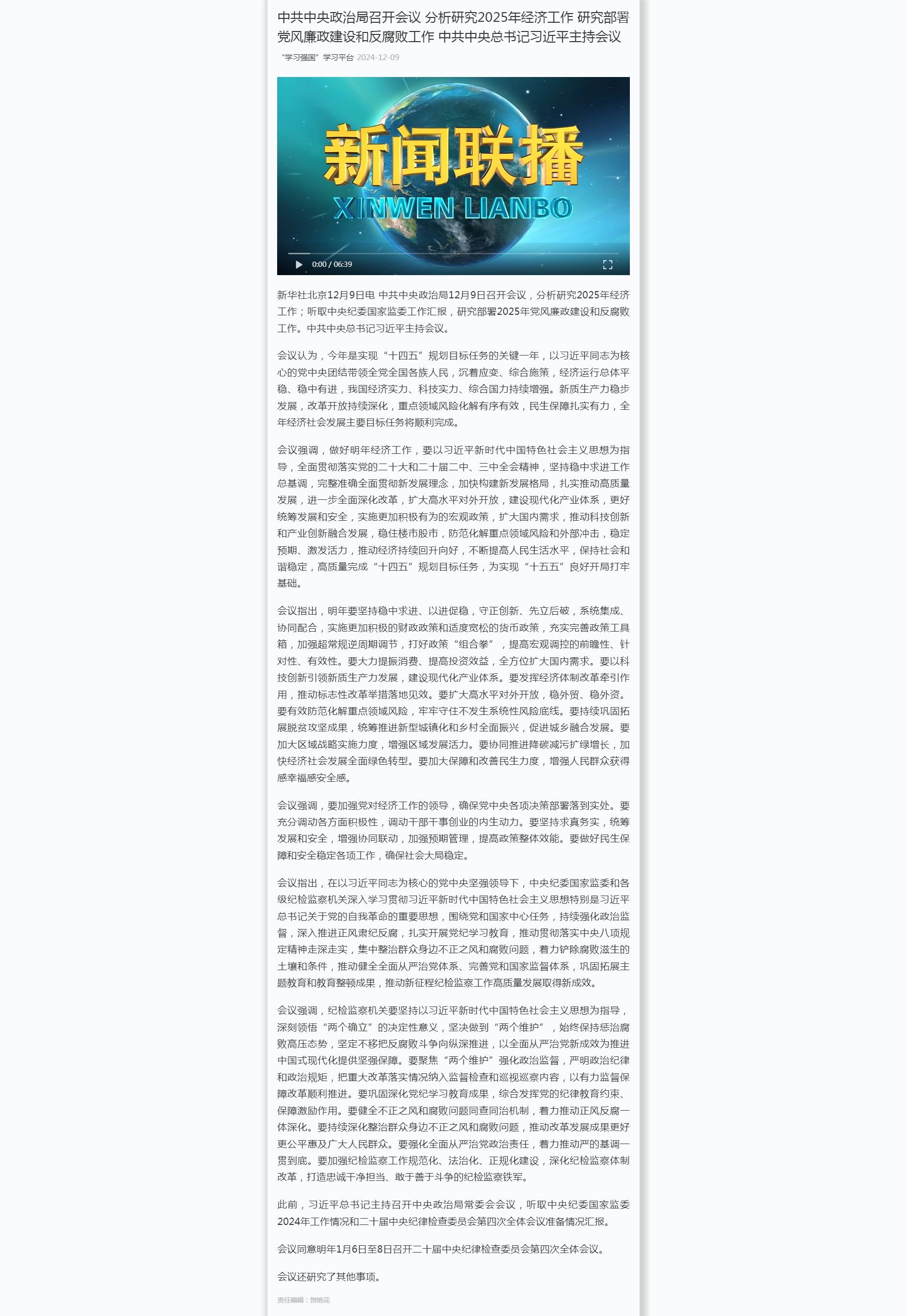 中共中央政治局召開會(huì)議 分析研究2025年經(jīng)濟(jì)工作 研究部署黨風(fēng)廉政建設(shè)和反腐敗工作 中共中央總書記習(xí)近平主持會(huì)議