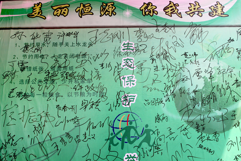 昌恒公司緊扣自然環(huán)境污染、節(jié)能減排等方面制作了宣傳條幅,印制了環(huán)保宣傳彩頁,在礦區(qū)食堂門口設(shè)置了固定宣傳點(diǎn)。青年義工化身“美麗使者”利用下班時(shí)間通過向來往職工群眾發(fā)放環(huán)保彩頁、講解環(huán)保知識等方式,不斷增強(qiáng)廣大職工群眾的環(huán)保意識,積極營造“綠色礦山我們共建 美好生活我們共享”的濃厚氛圍,呼吁大家為加快建設(shè)綠色和諧礦山做出積極貢獻(xiàn)。